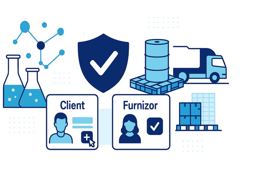 Facem comerțul cu produse chimice mai sigur si mai eficient prin procese digitale, verificari de conformitate si comunicare centralizata intre Client si Furnizor.